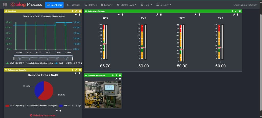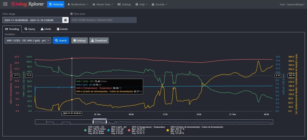 Aplicación para exploración de datos de procesos. Permite agrupar las variables por lotes y equipos, visualizar las mismas en tiempo real en un tablero dinámico customizable por el usuario y generar reportes de envío automático por correo al finalizar el lote.